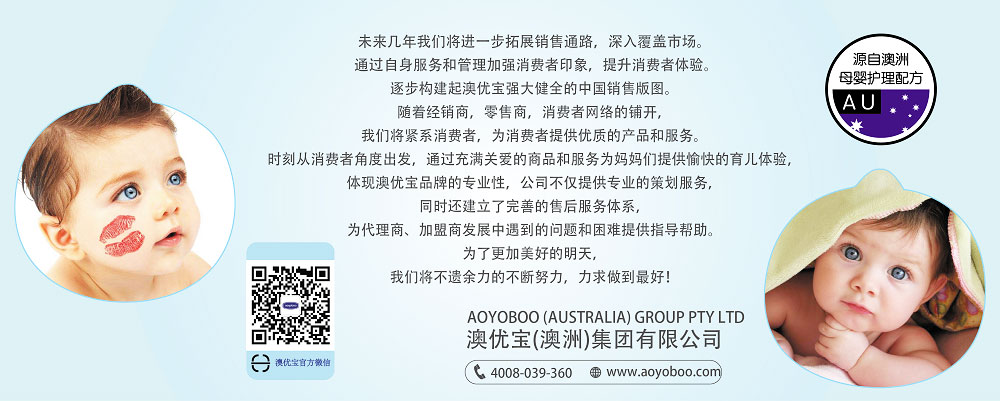 AOYOBOO(澳優(yōu)寶)是來(lái)自澳洲的著名母嬰用品品牌,公司創(chuàng)立于1988年,公司總部以及全球研發(fā)中心和全球運(yùn)作中心則位于澳大利亞悉尼。由澳洲自然科學(xué)研究院與皮膚科、產(chǎn)科、小兒皮膚科專家共同研究開發(fā)、專門針對(duì)孕產(chǎn)婦、新生兒及嬰幼兒時(shí)期的敏感嬌嫩肌膚而設(shè)計(jì)的低刺激高功能護(hù)膚用品。自公司創(chuàng)立以來(lái),一直秉承愛的理念,致力于為消費(fèi)者提供高品質(zhì)和種類齊全的母嬰用品和服務(wù),產(chǎn)品涵蓋了母乳喂養(yǎng)、奶瓶奶嘴、寶寶肌膚護(hù)理、衣物清洗等撫育寶寶的方方面面。AOYOBOO ( 澳優(yōu)寶 ) 自2018 年正式進(jìn)入中國(guó)市場(chǎng)之后,市場(chǎng)規(guī)模和生產(chǎn)規(guī)模不斷擴(kuò)大,如今,澳優(yōu)寶在中國(guó)與多家一流廠家合作,引進(jìn)國(guó)外最先進(jìn)配方以及原材料,嚴(yán)格按照澳洲生產(chǎn)工藝來(lái)執(zhí)行管理。
