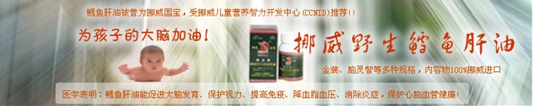 從2001年起,挪威連續(xù)6年被評(píng)為世界上生活質(zhì)量最高(最適宜居。┑膰(guó)家,挪威人均用藥量只有 美國(guó)的三分之一。挪威政府十分重視孕婦和嬰幼兒的健康,2001年11月發(fā)布了為婦嬰保健人員和準(zhǔn)媽媽 寫(xiě)的《嬰幼兒營(yíng)養(yǎng)指導(dǎo)》修訂本,全面闡述孩子喂養(yǎng)問(wèn)題,其中36處提到鱈魚(yú)肝油。你想知道挪威人怎樣喂養(yǎng)寶寶嗎?挪亞公司現(xiàn)有中譯本,可到公司索取。