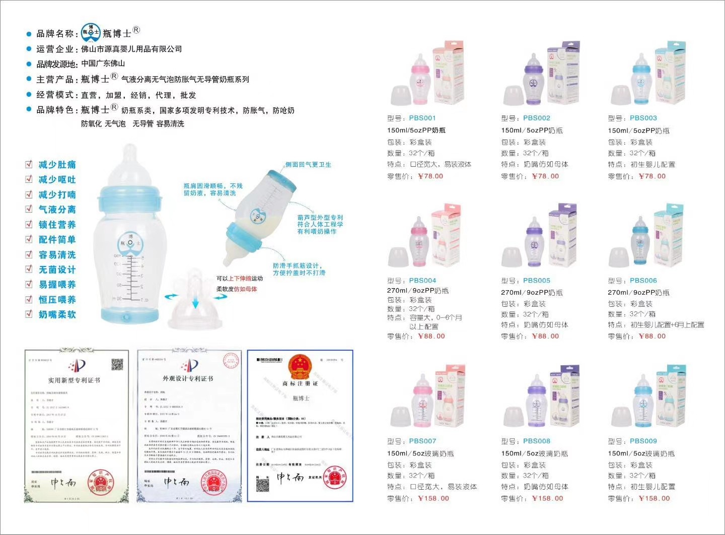 品牌名稱(chēng):瓶博士 主營(yíng)產(chǎn)品:瓶博士奶瓶 品牌特色:時(shí)尚、健康、安全、舒適