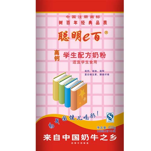聰明e百是工信部等國(guó)家六部委聯(lián)合推薦放心奶粉,首批合格發(fā)證企業(yè)。自有奶源,來(lái)自牛之鄉(xiāng)奶源,純天然,無(wú)污染。毛主席曾夸其為“馬背上的書法家”,中國(guó)書法家協(xié)會(huì)主席,舒體創(chuàng)始人舒同將軍之子舒安題名企業(yè)。