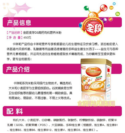 卡咪呢金胚麥芽D3高鈣有機營養(yǎng)米粉