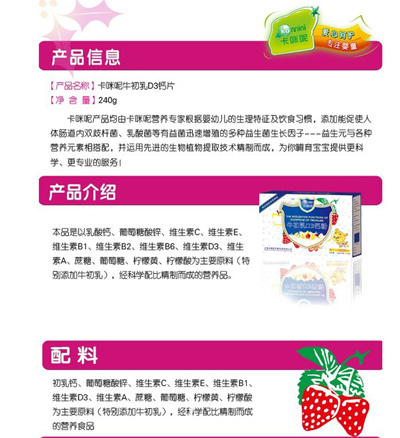 蛋白質(zhì)是人體重要營養(yǎng)素,也是多的營養(yǎng)素之一,是一切生命的物質(zhì)基礎(chǔ),可以保證機體的生長、發(fā)育、繁殖、遺傳及修補損傷的組織。上?ㄟ淠啬笅胗闷酚邢薰臼菍I(yè)的母嬰營養(yǎng)品企業(yè),針對中國孕嬰童體質(zhì)推出了卡咪呢蛋白質(zhì)粉系列產(chǎn)品,現(xiàn)面向全國招商。