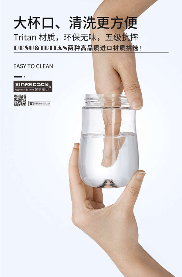 如果寶寶不愿意接受奶瓶,不妨試試馨菲寶貝超寬口徑PPSU奶瓶,專為斷奶寶寶設計,甄選材質,品質安心,如母愛般的悉心呵護,造型萌趣可愛,讓寶寶愛不釋手。