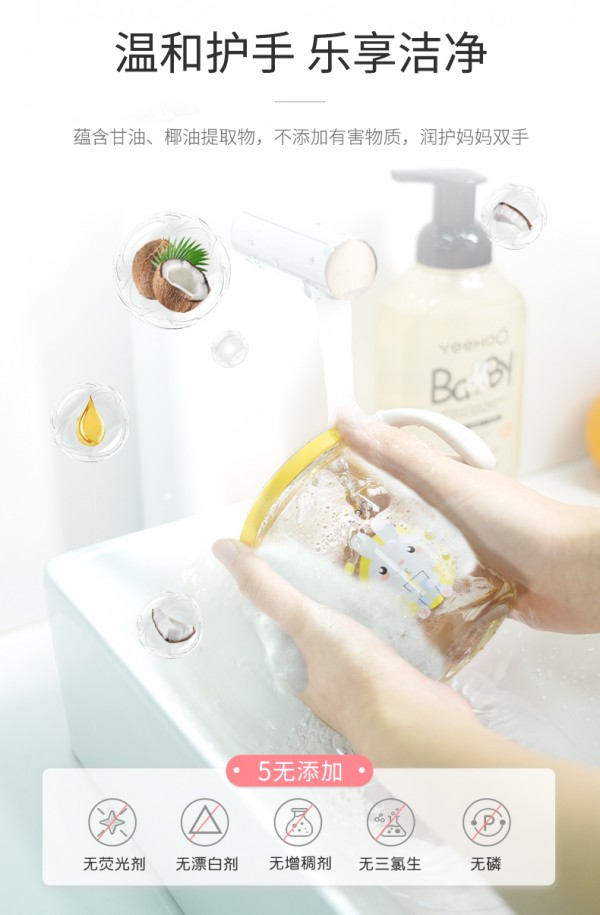 英氏嬰兒奶瓶果蔬酵素清潔泡沫蘊(yùn)含甘油、椰油等天然植物提取物,不添加熒光劑、增白劑、增稠劑、三氯生、磷等有害物質(zhì),溫和清洗更護(hù)手,悉心潤(rùn)護(hù)媽媽雙手,讓媽媽樂享潔凈。