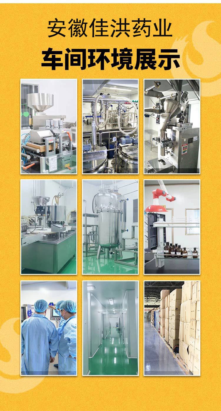 安徽佳洪健康產(chǎn)業(yè)有限公司位于全球最大的中藥材集散中心安徽亳州市,占地4600平方的現(xiàn)代化生產(chǎn)基地,其中生產(chǎn)車間占地2300平。倉儲面積2300平。國際先進的生產(chǎn)檢測設備,固體制劑、口服液、軟膠囊、保健用品、消毒用品、醫(yī)療器械、代用茶等生產(chǎn)車間,可生產(chǎn)加工片劑、硬膠囊劑、軟膠囊劑、顆粒劑、粉劑、凝膠等劑型,提供最完善的一站式OEM加工服務。獨立的工藝布局走向,能夠?qū)崿F(xiàn)多品種、多劑型的同時聯(lián)動生產(chǎn)和單一品種的獨立生產(chǎn)。創(chuàng)造獨立的品牌及品牌OEM基地。