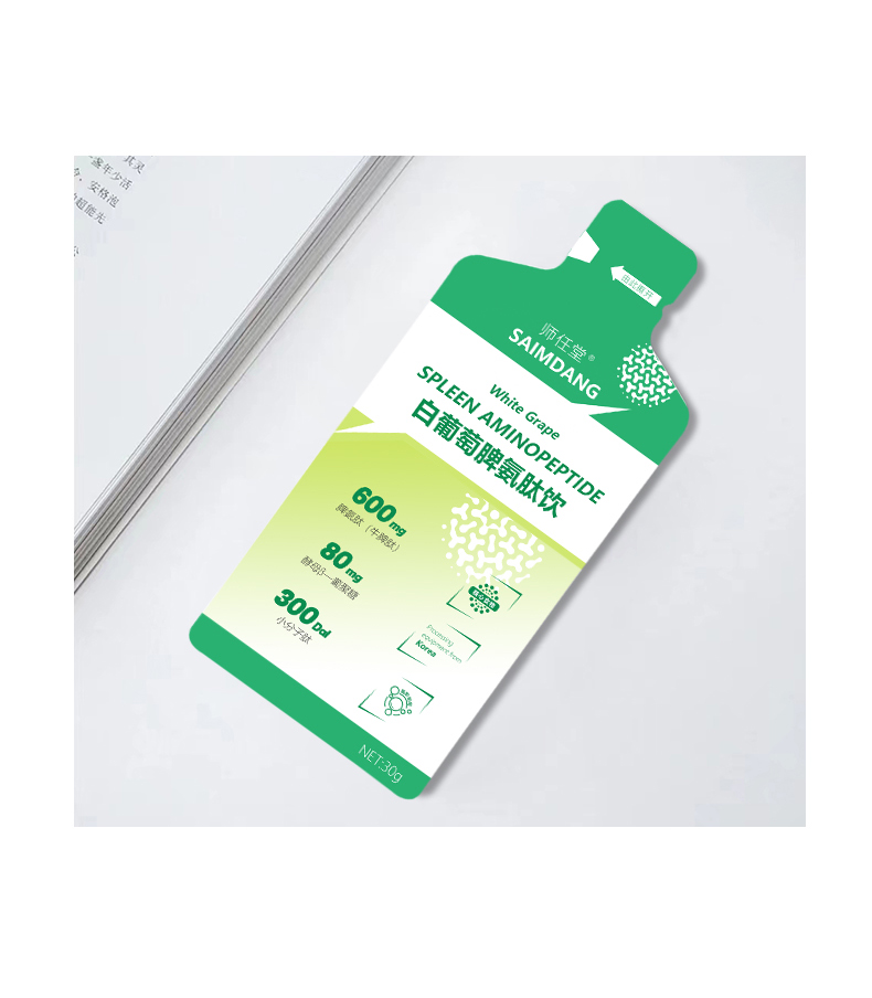 師任堂白葡萄脾氨肽飲,少年兒童專研配方,添加牛脾肽、酵母β-葡聚糖,雙重防護,均衡自護力,構建健康防護盾,換季時節(jié),加倍呵護。高含量小分子肽,成分更易吸收,不增加腸胃負擔。配料干凈,0防腐劑0添加劑0香精。清新水果味,不需媽媽哄,孩子輕松喝光光。每天一袋,儲備免疫力,成長不費力。小袋包裝,隨吃隨開,避免氧化、變質(zhì),出門隨身攜帶更方便。