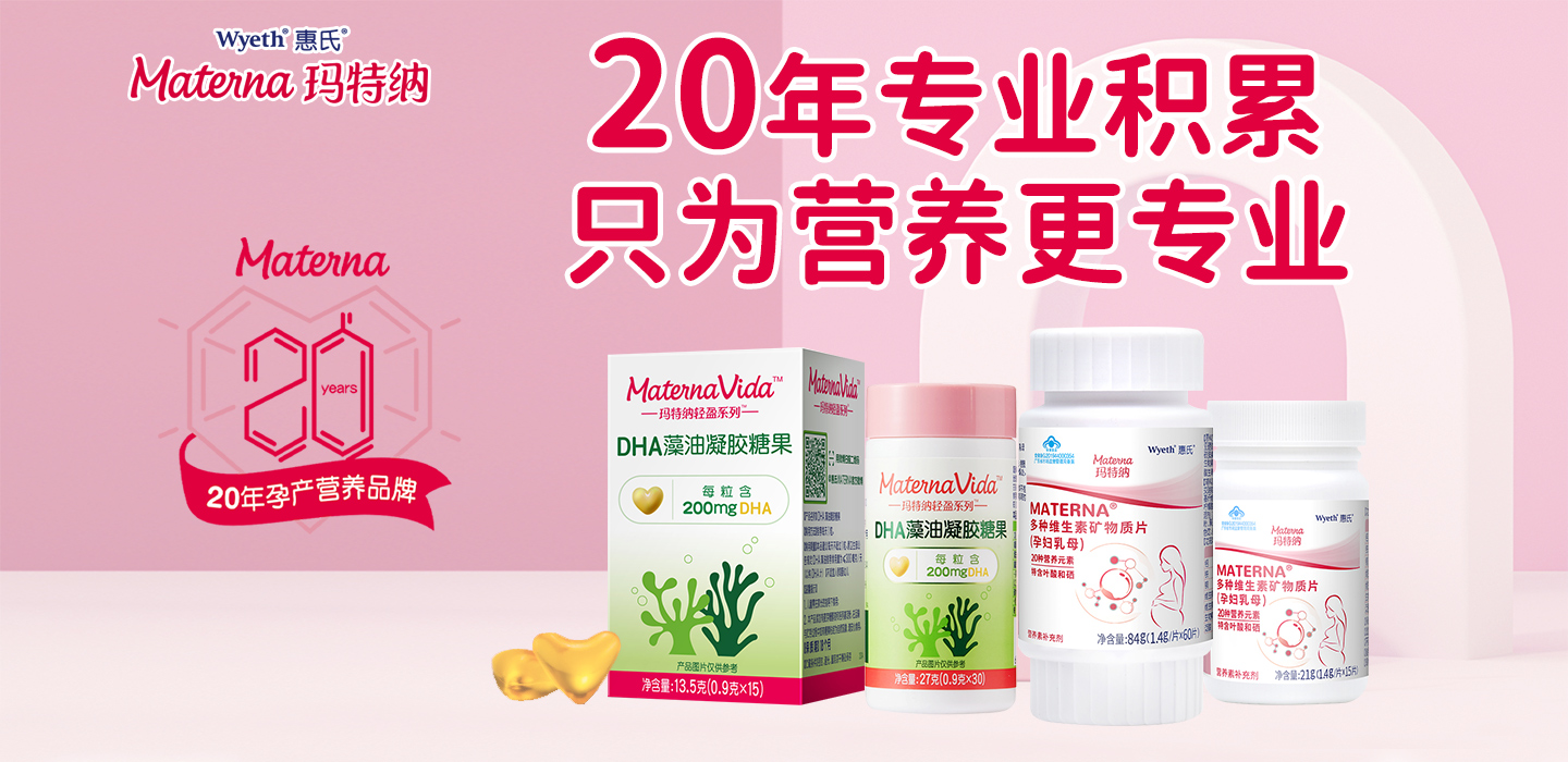 惠氏瑪特納是惠氏專門面向孕產(chǎn)的品牌;菔犀斕丶{在1986年品牌注冊進入中國,并于1995年獲得OTC批文,旗下第一款孕婦多維產(chǎn)品正式進入中國市場。20多年來惠氏瑪特納致力于專項研究備孕、懷孕和哺乳期各個階段的不同營養(yǎng)所需與常見的健康挑戰(zhàn),為中國媽媽和寶寶科學規(guī)劃不同的營養(yǎng)產(chǎn)品,提供專業(yè)營養(yǎng)解決方案。