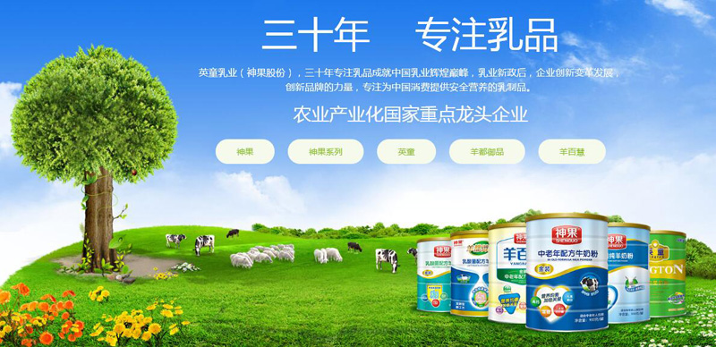 陜西神果股份有限公司始建于1987年,位于中國(guó)唯一的國(guó)家級(jí)農(nóng)業(yè)高新區(qū)--楊凌農(nóng)業(yè)高新技術(shù)產(chǎn)業(yè)示范區(qū)內(nèi),是我國(guó)西北地區(qū)生產(chǎn)規(guī)模最大、技術(shù)設(shè)備最先進(jìn)的乳制品生產(chǎn)加工企業(yè),1997年完成了股份制改造,是陜西省首家股份制農(nóng)業(yè)產(chǎn)業(yè)化龍頭企業(yè)。是集乳制品、飲料加工生產(chǎn)、運(yùn)輸、冷藏、養(yǎng)殖、廣告、金融、房地產(chǎn)開(kāi)發(fā)于一體的大型股份制食品工業(yè)企業(yè)。是目前我國(guó)西北地區(qū)生產(chǎn)規(guī)模較大,技術(shù)設(shè)備最先進(jìn)的乳制品生產(chǎn)加工企業(yè)之一。2014年根據(jù)國(guó)家乳業(yè)新政要求,神果完成乳品工廠的升級(jí)改造建設(shè)完全符合國(guó)家標(biāo)準(zhǔn)。同時(shí),神果股份進(jìn)行資產(chǎn)和股份重組,完成新一輪投資,神果股份在乳制品行業(yè)將會(huì)迎來(lái)更加強(qiáng)勁的發(fā)展機(jī)遇。神果股份成立27年來(lái)取得一系列的輝煌成就和榮譽(yù),2014年9月神果股份再次被農(nóng)業(yè)部、國(guó)家發(fā)展和改革委員會(huì)、財(cái)政部、商務(wù)部、中國(guó)人民銀行、國(guó)家稅務(wù)總局、中國(guó)證券監(jiān)督管理委員會(huì)、中華全國(guó)供銷合作總社聯(lián)合審定為農(nóng)業(yè)產(chǎn)業(yè)化國(guó)家重點(diǎn)龍頭企業(yè)。神果,羊都御品,英童,羊百慧品牌的乳酸菌及成人奶粉新配方新包裝隆重上市。