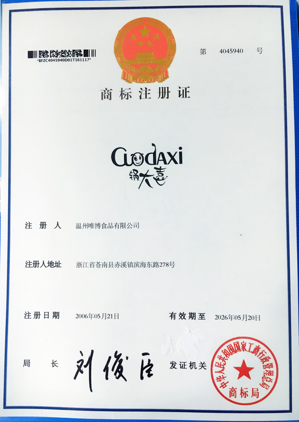 您所在位置:首頁(yè)>溫州唯博食品有限公司>形象展示