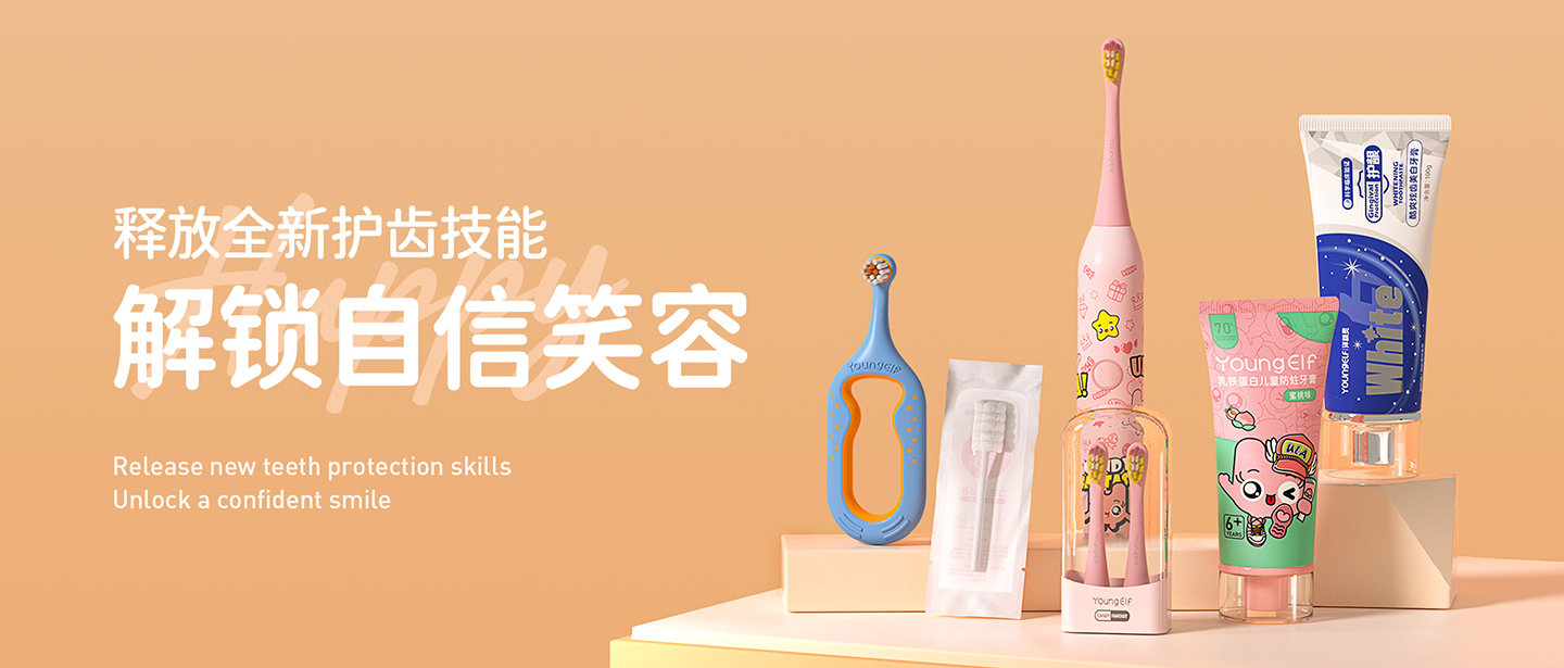 YOUNGELF代表的不僅僅是兒童口腔的健康,而更多的是要傳達給消費者一種對于潮流與健康結(jié)合的新文化,新的生活方式。同時我們從兒童口腔問題的根源出發(fā),結(jié)合強大的研發(fā)團隊以及頂尖的兒童口腔產(chǎn)品設(shè)計團隊,真正的在消費者痛點中進行深挖掘,深思考,深分析從而解決消費者的痛點問題。 并引入了歐美的認證體系來為消費者們保駕護航,真正做到生產(chǎn)質(zhì)量拔尖,產(chǎn)品品質(zhì)卓越的品牌標準。 不久的未來,我們將成為兒童口腔護理產(chǎn)品的標準制定者,同時也會成為行業(yè)的領(lǐng)頭“洋”。