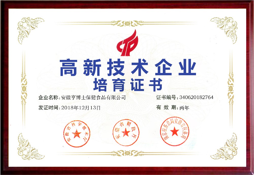 亨博士,安徽亨博士保健食品有限公司旗下品牌,它是一家集研發(fā)、生產(chǎn)、銷售于一體的現(xiàn)代化健康食品生產(chǎn)企業(yè),公司于2013年成立,2017年初獲批食品生產(chǎn)許可證,2018年獲批“亨博士功能性食品研發(fā)中心”,“ISO9000認證”,目前擁有1萬平米凈化車間,100多名員工,10多名研發(fā)人員,與阜陽大學(xué),安徽農(nóng)業(yè)大學(xué)簽署產(chǎn)學(xué)研協(xié)議,公司先后獲得“省級專精特新中小企業(yè)”、“國家高新技術(shù)培育企業(yè)”、“市級十佳青年明星企業(yè)”、“市級農(nóng)業(yè)產(chǎn)業(yè)龍頭企業(yè)”等榮譽稱號。