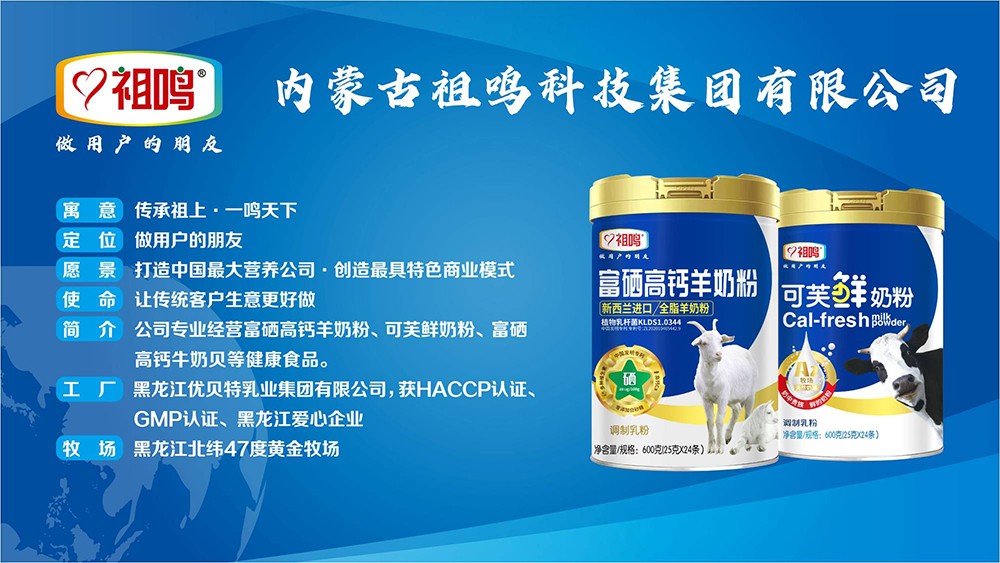 內(nèi)蒙古祖鳴科技集團(tuán)有限公司旗下祖鳴奶粉,做用戶的好朋友。致力于為消費(fèi)者提供營養(yǎng)、健康的奶粉、奶貝、奶條,百年傳承、百年品質(zhì) 、百年信譽(yù)、百年精神、傳承祖上、一鳴天下、為偉大祖鳴百年夢努力奮斗。