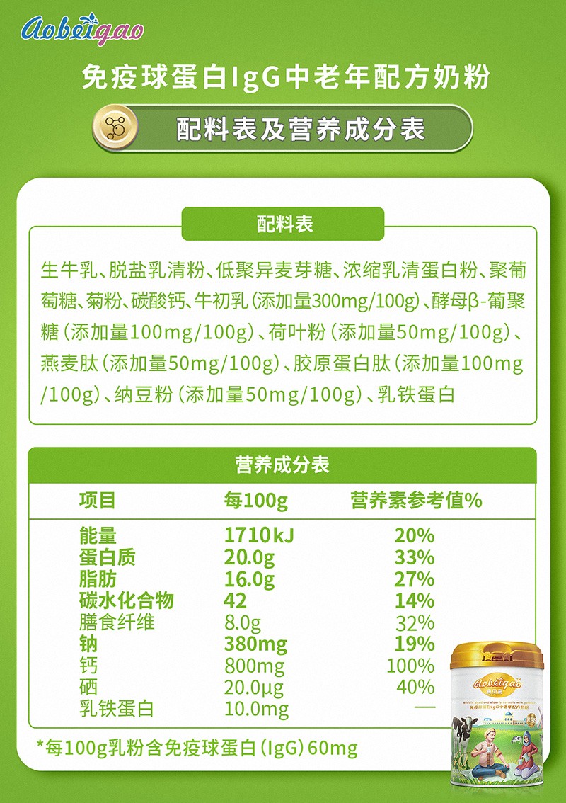 近日,澳貝高品牌正式推出專為中老年人群設(shè)計(jì)的免疫球蛋白IgG營(yíng)養(yǎng)配方奶粉,以生牛乳為主要原料,融合多種天然營(yíng)養(yǎng)物質(zhì),為中老年群體提供日常營(yíng)養(yǎng)新選擇。