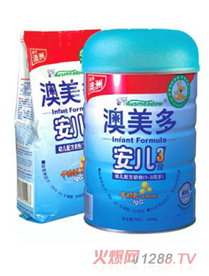 隨著安兒、安貝、安諾欣、嬰博等七大系列四十多個品種的配方食品的陸續(xù)成功上市,現(xiàn)澳美多金裝安兒系列奶粉也即將上市,敬請關注。