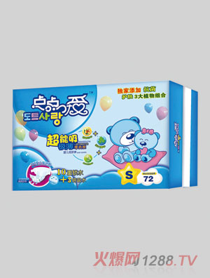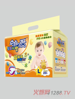 點(diǎn)點(diǎn)愛嬰兒紙尿褲是韓國安秀集團(tuán)專門針對嬰兒研發(fā)出來的一款嬰兒紙尿褲,它具有大容量,超能吸的特點(diǎn),它能大量蓄存bao--bao尿液,即使夜晚bao--bao的尿再多,也能保持整夜干爽,同時(shí)他還提取3大植物精華,讓bao--bao整夜香甜,同時(shí)也讓bao--bao遠(yuǎn)離紅屁屁。