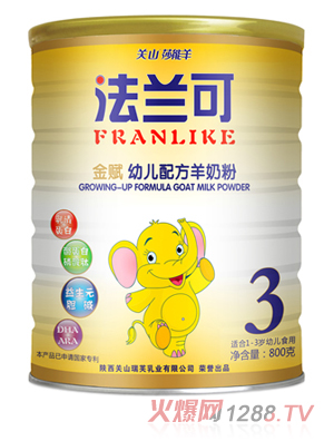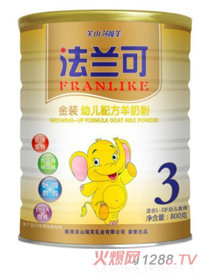 法蘭可是陜西關(guān)山乳業(yè)有限責(zé)任公司最近新推出的一系列嬰童健康羊奶粉,該系列產(chǎn)品優(yōu)選天然原料,經(jīng)多位營養(yǎng)專家潛心研究而成,升級配方,營養(yǎng)更均衡更全面,給成長中的下一代更多高品質(zhì)呵護。