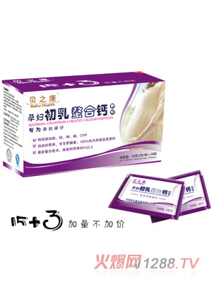 貝之康孕婦初乳螯合鈣顆粒是專為孕婦設計的營養(yǎng)補充佳品,特別添加鐵鋅鉀磷、CPP,媽咪好營養(yǎng),bao--bao更健康,百分百天然高品質原料,采用最新的螯合技術生產(chǎn),幫助更好的吸收,吸收利用率在95%以上。