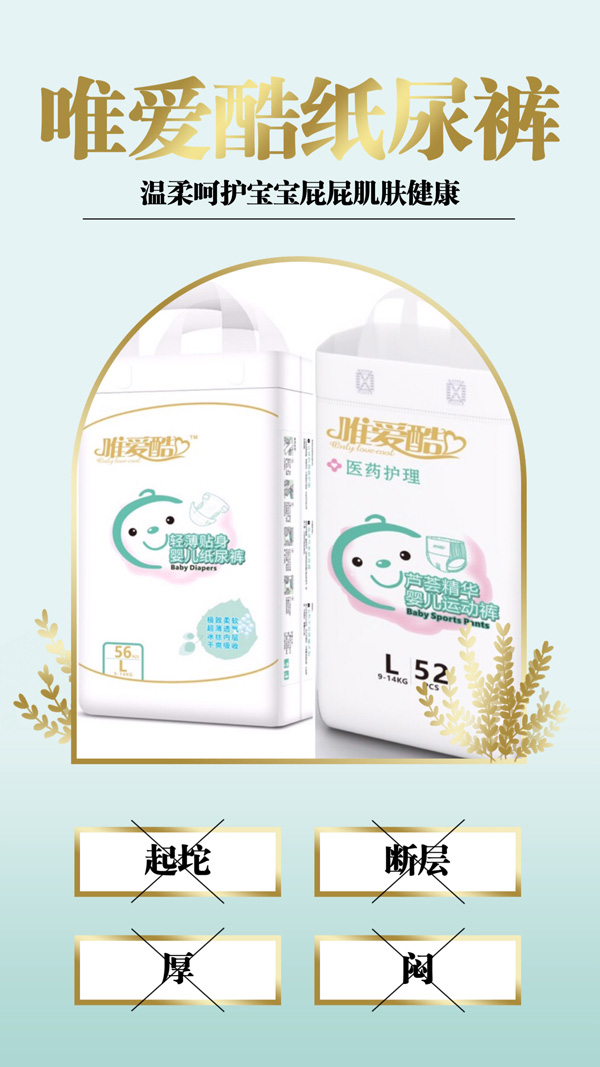 “唯愛酷”用專業(yè)做優(yōu)質(zhì)嬰兒紙尿褲,最適合的才是最好的。為生產(chǎn)適合中國寶寶的紙尿褲,唯愛酷與多家權(quán)威機(jī)構(gòu)合作,針對中國寶寶體型以及發(fā)育特點(diǎn),深入了解寶寶需求,打造高品質(zhì)的紙尿褲。