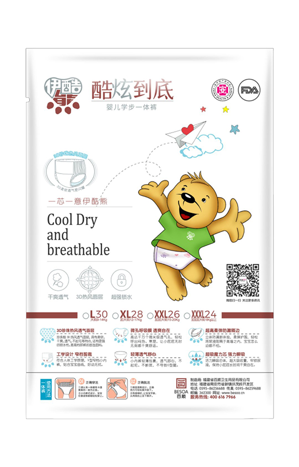 伊酷熊,專注嬰兒防尿用品的研發(fā)、生產(chǎn)及銷售領(lǐng)域,目前有高級(jí)嬰兒紙尿褲、嬰兒學(xué)步一體褲等系列。甄選高端優(yōu)質(zhì)原料,采用3D珍珠熱風(fēng)透氣面層,柔軟舒適,干爽透氣,超強(qiáng)鎖水,專注呵護(hù)寶寶屁屁健康。