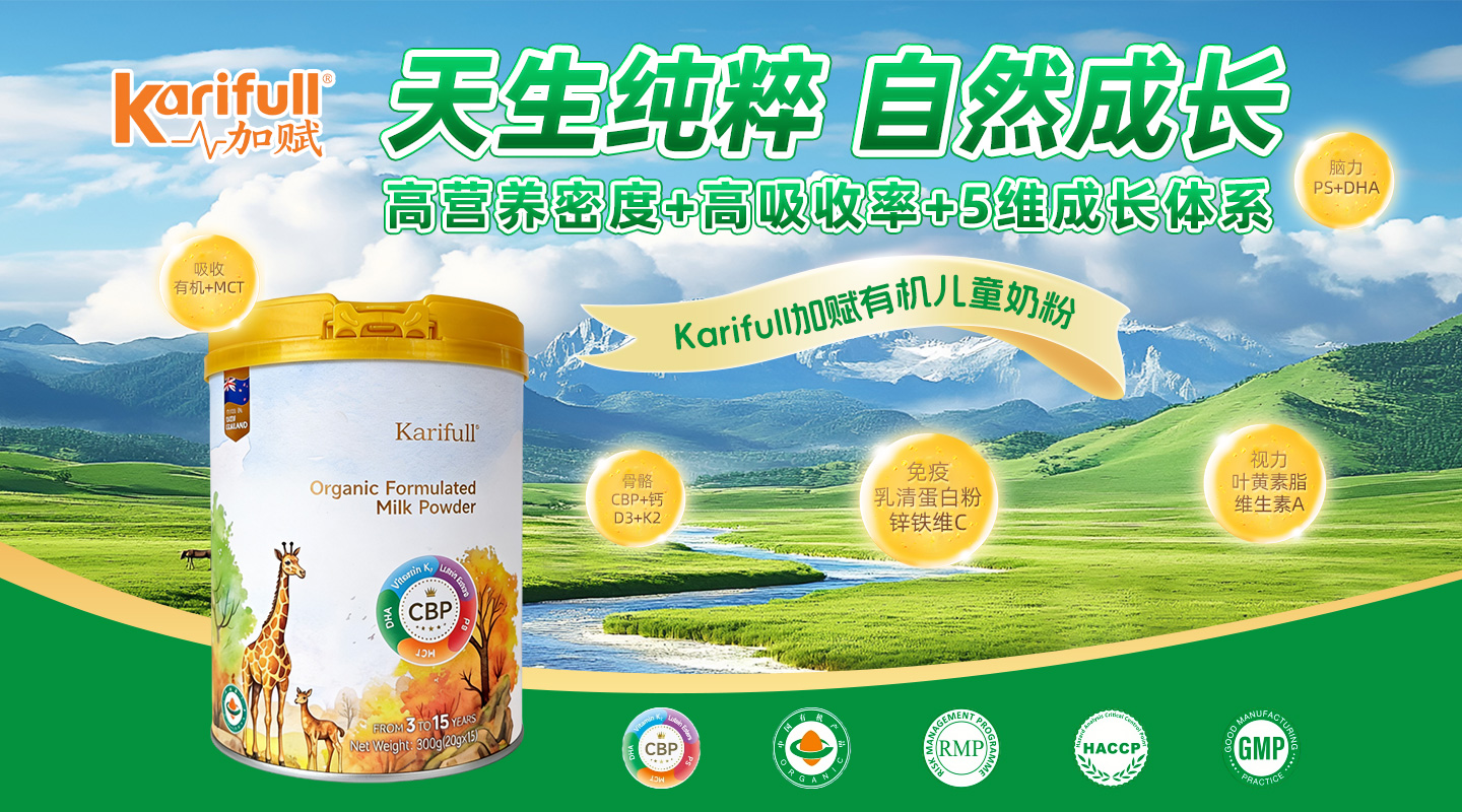 加賦有機(jī)兒童MCT配方奶粉通過(guò)中紐雙重有機(jī)認(rèn)證,專為3-15歲兒童設(shè)計(jì)。產(chǎn)品以高營(yíng)養(yǎng)密度和高吸收率為特點(diǎn),核心“5維成長(zhǎng)體系”全面支持骨骼、大腦、視力、免疫及吸收,助力孩子成長(zhǎng)黃金期的營(yíng)養(yǎng)需求。