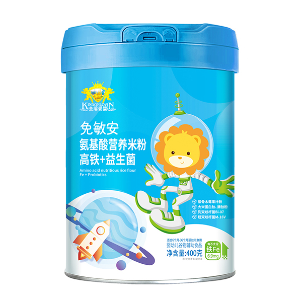 金盾愛嬰免敏安氨基酸營養(yǎng)米粉,有高鐵+維C、高鐵+益生菌兩款單品,均選優(yōu)質(zhì)大米、小米等谷物為原料,采用濕法工藝制作,粉質(zhì)細(xì)膩,沖調(diào)性好。在保留米中營養(yǎng)的基礎(chǔ)上,特別添加多種氨基酸、接骨木莓果汁粉、大米蛋白肽、脾肽粉、乳雙歧桿菌Bi-07、短雙歧桿菌M-16V等,每百克含鐵6.9mg,小分子活性肽,營養(yǎng)豐富易吸收。