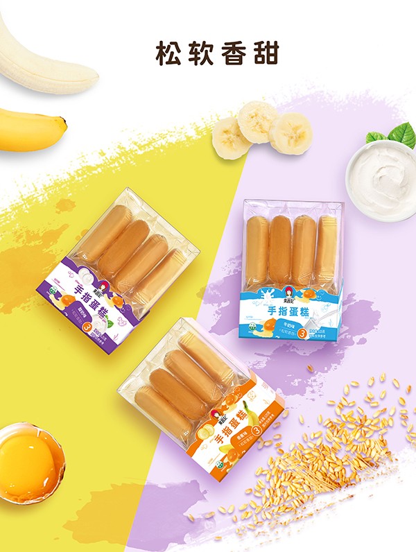 果蔬妃【手指蛋糕】生產(chǎn)過(guò)程中不添加人工色素、香精和防腐劑,堅(jiān)守安全配方,選用有機(jī)雞蛋和有機(jī)面粉,采用烘烤工藝,松軟香甜,有香蕉、牛奶、酸奶3種口味供寶寶選擇!