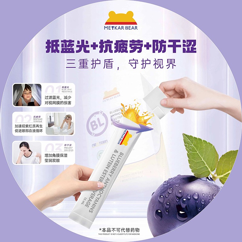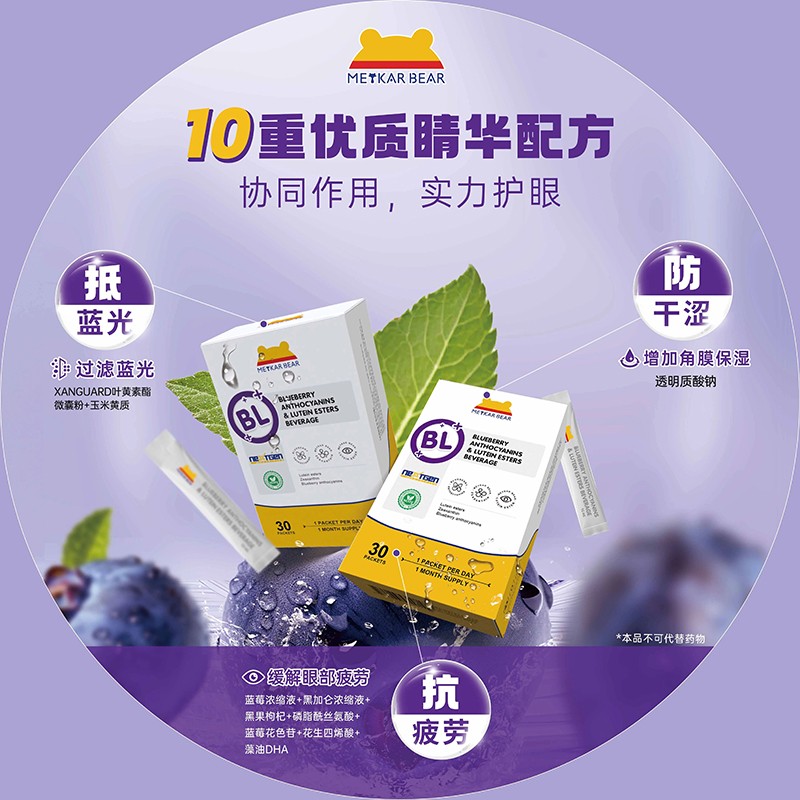 不僅如此,MEYKARBEAR美卡熊藍(lán)莓花色苷葉黃素酯飲品甄選了10大原料復(fù)合配方,多重天然營養(yǎng)呵護(hù),酸甜口感,喚醒味蕾,嘗得出的“潤”、“甜”、“鮮”。專治嘴饞、嘴刁的寶寶,全方位滋養(yǎng)寶寶的嬌嫩雙眼,為孩子的成長之路點(diǎn)亮一盞明亮的燈塔。