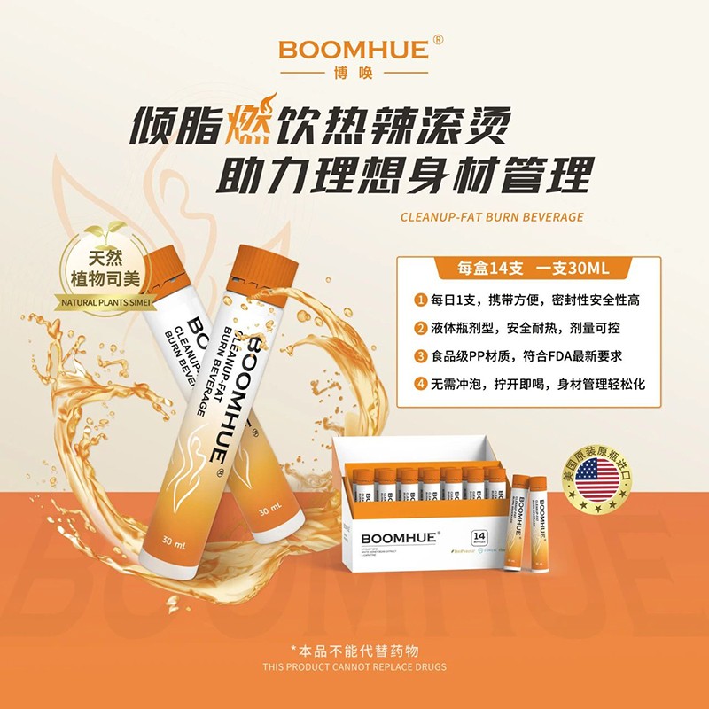 BOOMHUE博喚傾脂燃飲采用獨(dú)特的液體瓶劑型設(shè)計(jì),告別傳統(tǒng)產(chǎn)品的瓶瓶罐罐,攜帶更方便。同時(shí)消費(fèi)者無需害怕巨大的藥丸吞服體驗(yàn),只需輕輕擰開瓶蓋,即可直接飲用,無需沖泡或攪拌,口感酸甜好喝,將身材管理日;、零食化,為身材管理帶來更輕松的選擇。
