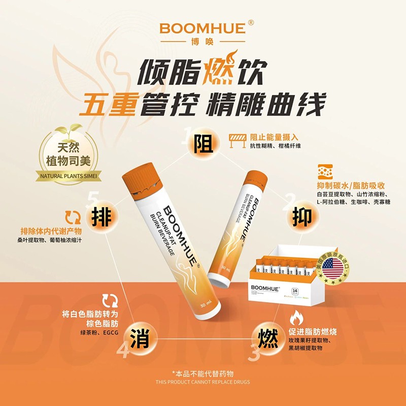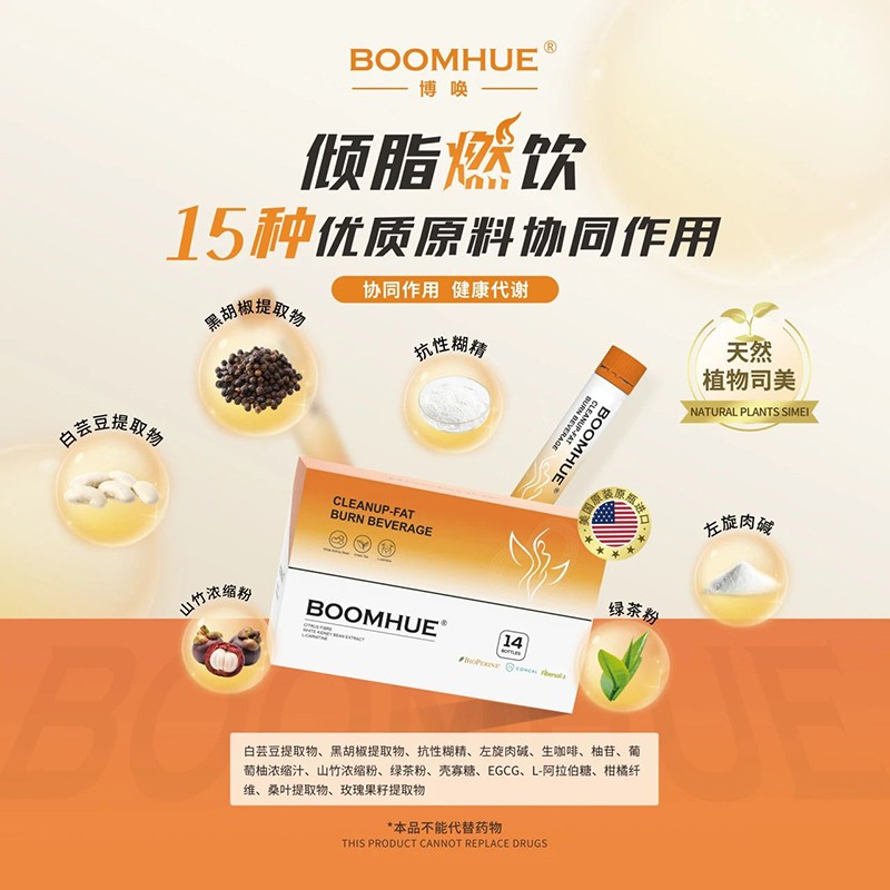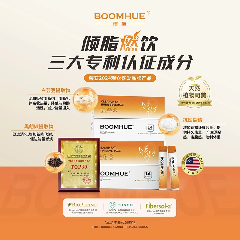 在追求健康與美麗的道路上,瑞普斯同樣不遺余力。BOOMHUE博喚傾脂燃飲,憑借卓越的復(fù)合配方與創(chuàng)新營養(yǎng)補(bǔ)給方式,榮獲“最受觀眾喜愛品牌產(chǎn)品獎”。傾脂燃飲甄選15種優(yōu)質(zhì)原料成分,堪稱“天然植物司美”,其中白蕓豆提取物、黑胡椒提取物、抗性糊精三大成分擁有國內(nèi)外專利認(rèn)證。通過阻、抑、燃、消、排5重管控,助力理想身材管理。